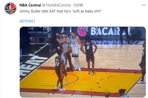 末节最后时刻,阿德巴约执行罚球时,巴特勒和唐斯两个人起争执,两人互喷吵架,刚好裁判就站在一旁,对此裁判第一时间介入,并且吹罚两人技术犯规;昔日队友再见面真是分外眼红,据美媒NBA Central报道,巴特勒当时怒骂唐斯:你软得像小宝宝拉的屎。