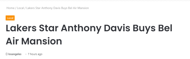 24直播网讯 北京时间5月8日,据Therealdeal网站报道,湖人球星安东尼-戴维斯已经在洛杉矶的顶级富人区(贝莱尔)购置了一套配备篮球场和游泳池的豪宅,消息源透露,交易价格是3200万美元。