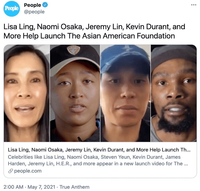 24直播网讯 前段时间外媒报道篮网老板蔡崇信联合沃尔玛、美国银行和NBA联盟等一起成立亚裔基金会,其中蔡崇信和雅虎联合创始人杨致远等人承诺投入1.25亿美元,沃尔玛和NBA联盟等筹集1.25亿,加起来是2.5亿美元,用于支持亚裔社区发展、改变外界对于亚裔的看法,这样的举动收获了外界一片的赞誉。而现在传来消息,凌志慧、大阪直美,林书豪以及凯文杜兰特协助成立了亚裔基金会。