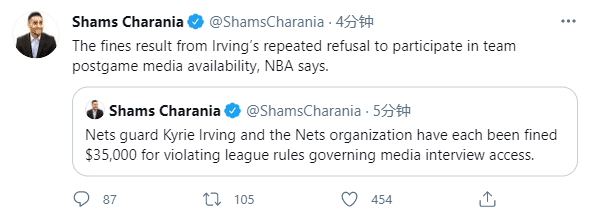 官宣重罚7万美元!欧文违规又牵连篮网被罚,真因曝光:多次拒绝采访 追球者 原创 5小时前