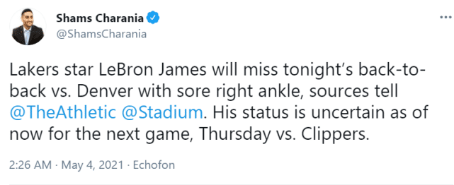 湖人最近7场输了6场,他们试图在常规赛最后阶段迎来反弹,避免参加残酷的附加赛,但屋漏偏逢连夜雨,刚刚复出两场的詹姆斯,又因右踝酸痛休战。名记查拉尼亚报道称,詹姆斯还不确定能否参加下一场对快船的比赛。