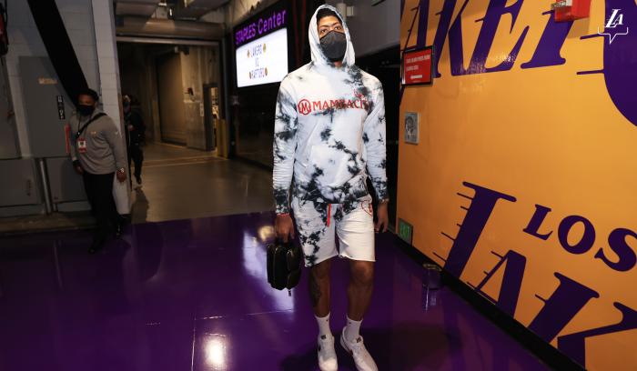 浓眉穿着长袖连帽衫和短裤,哈雷尔、卡鲁索等人都穿着长裤长袖的套装,还有球员穿连帽卫衣搭配其他裤子。