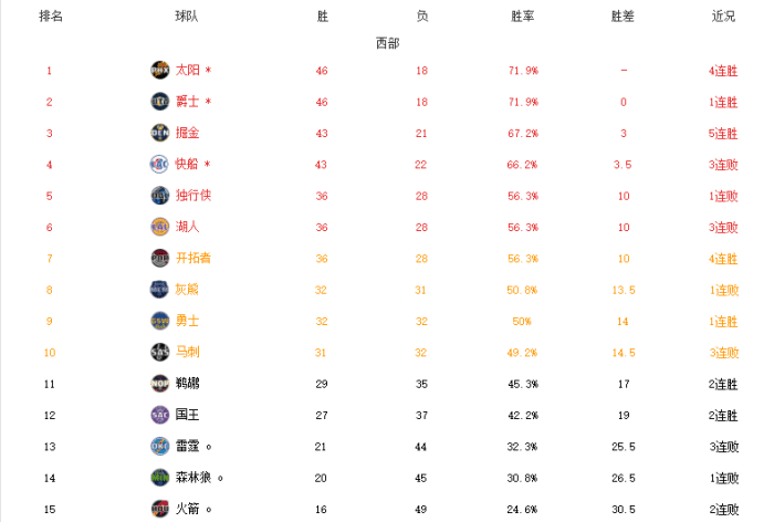 24直播网5月3日讯今天进行的NBA常规赛结束之后西部附加赛区域的变动是非常大的,湖人跌到第六名,和第五名独行侠、第七名的开拓者战绩一样。马刺和灰熊这两支球队被绝杀之后勇士渔翁得利,他们很有希望冲击第七和第八名。同时马刺的输球也令身后处于连胜中的鹈鹕看到了希望,他们的表现非常强势,所以从第五到第十一名,这些球队谁可以直通季后赛,谁拿下附加赛的门票,备受关注。