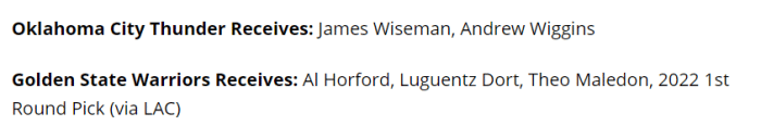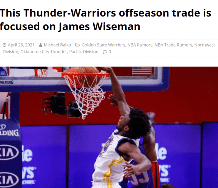 美国知名体育媒体《nbaanalysis》专栏记者Michael Balko撰文分析,建议打包送出维金斯和怀斯曼,从雷霆换来2022年首轮选秀权、霍福德、多尔特和马勒东。