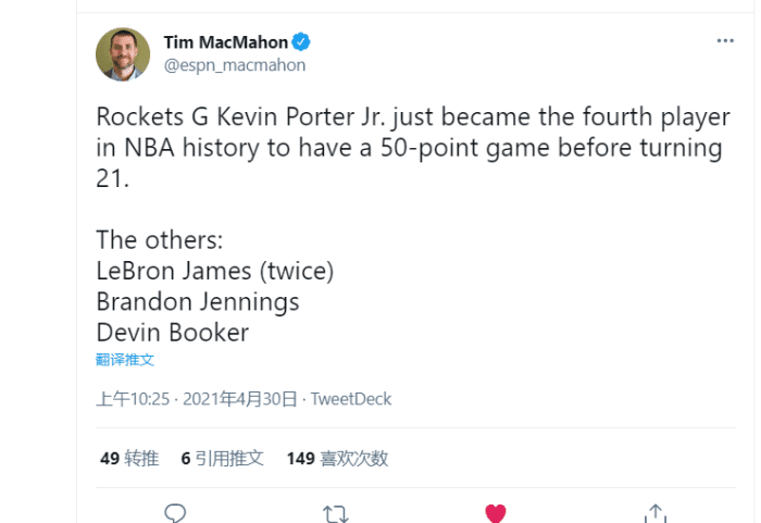 另外,50分和9记三分都创造了凯文波特生涯单场新高!不得不说,火箭交易得到凯文波特确实是捡漏,这名球员潜力无限,值得作为球队基石培养!