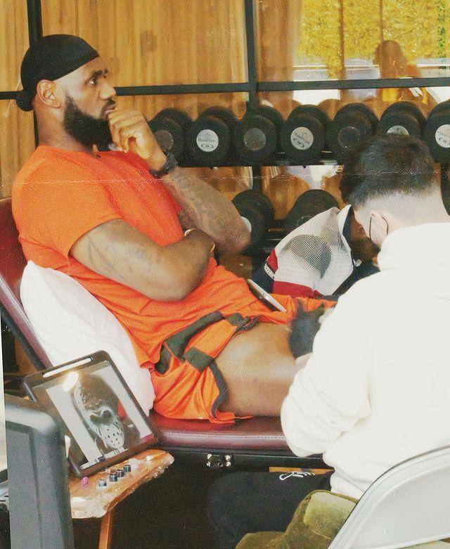 这是此前在家中养伤期间,詹姆斯在自己大腿上新增的纹身,目前还不清楚詹姆斯的用意,但这纹身看着挺吓人的。