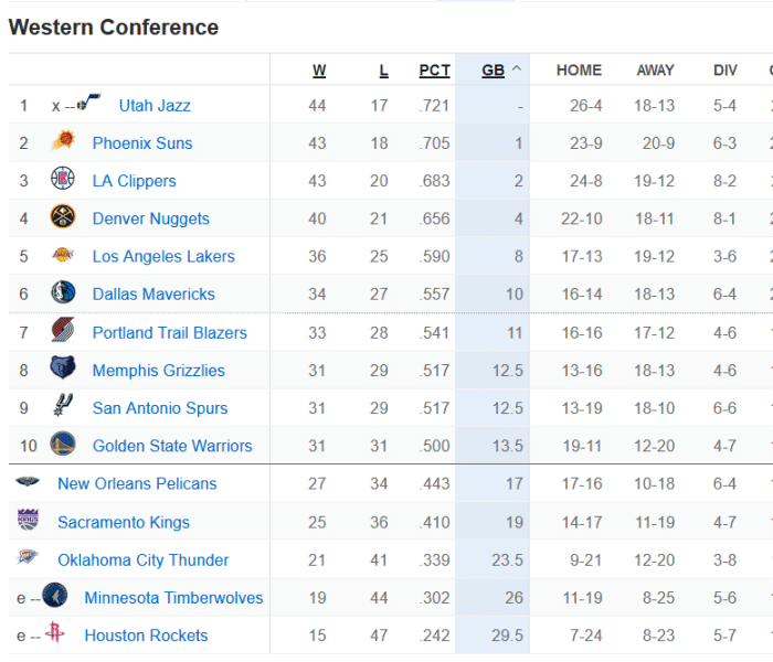 火箭5连败输榜尾大战,勇士30分惨败,篮网甩开第二,附排名