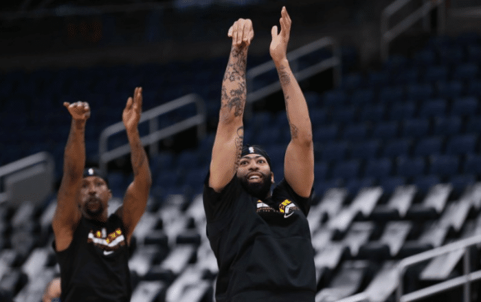 24直播网讯 北京时间4月27日,湖人客场对阵魔术,赛前,湖人主帅沃格尔接受了媒体采访,谈到了浓眉、詹姆斯等人的状况。复出后的两场比赛,浓眉都有限时令,但今天这一限制将解除,至于詹姆斯,沃格尔表示这位36岁球星仍处于“无限期休战(out indefinitely)”的状态。