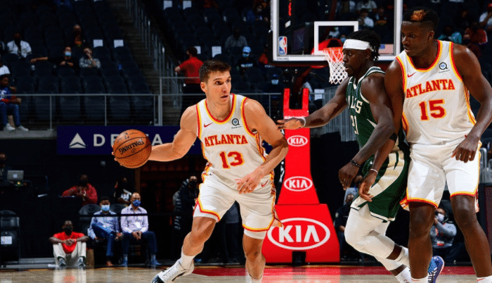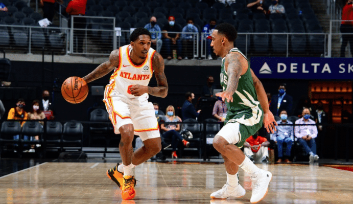24直播网讯 今天NBA常规赛上演了逆转好戏,老鹰主场对阵东部第三的雄鹿,他们在缺少特雷杨的情况下三节结束的时候落后8分,不过到了末节,博格达诺维奇单节12分,路威单节15分,两人加起来有27分,比雄鹿单节得分还高,雄鹿末节只有26分入账,路威和博格丹的三分球直接给球队带来了胜利,最终的比分也定格在111-104,老鹰继续冲击东部前四。