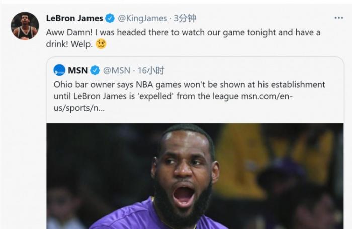 听到这个消息可能有球迷会觉得,这位老板没事搞事是为了蹭老詹热度吧,但事实并非如此!他口中所谓的开除包含两层意思,一是NBA因为詹姆斯的一些言行禁止他出塞(这不可能)二是直到詹姆斯退役前就不在酒吧内播放NBA的比赛,这属于个人行为也无可厚非!