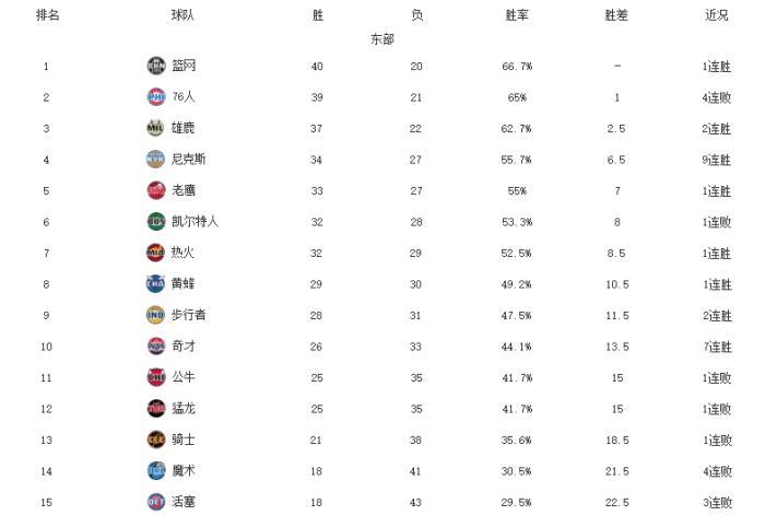 24直播网讯 NBA常规赛进行到现在,大部分球队都只剩下9-12场比赛了,这其中东部的格局已经越来越清晰了,篮网、费城和雄鹿争夺常规赛东部冠军,尼克斯老鹰作为黑马搅局直通季后赛的前六名,而附加赛资格的席位也很明朗,猛龙公牛掉队了,奇才强势逆袭。