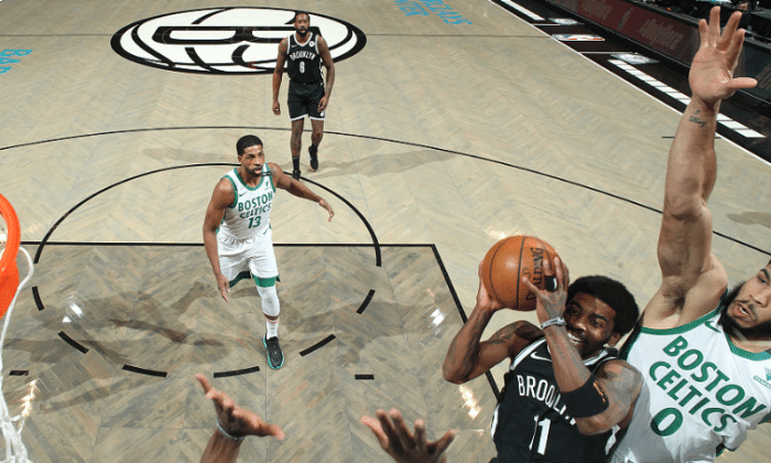 24直播网讯 今天NBA常规赛篮网以104-99险胜凯尔特人,成功升至东部第一。这场比赛欧文最后时刻的两罚全中帮助球队锁定胜局,但其实此役欧文的表现相对一般,虽然送出了11次助攻,但他的投篮只有尴尬的19中4,得到了15分,正负值是-10,与小乔丹一样都是篮网全队垫底的位置。