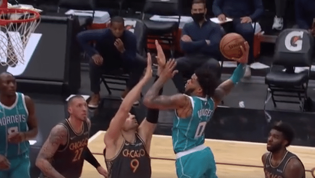24直播网讯 今天NBA常规赛黄蜂和公牛展开对决,此役运动能力炸裂的黄蜂悍将布里奇斯再度贡献精彩时刻,他在比赛中隔扣了公牛中锋武切维奇,相当的霸气。联想到近期的布里奇斯隔扣不断,所以说他是本赛季的隔扣代言人,超越隔扣渡边雄太的爱德华兹并不为过。