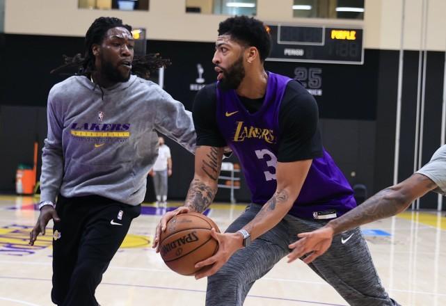 湖人官方也晒出了浓眉今天的训练照片。一张照片上,他在和队友哈雷尔进行对抗,另一张照片上,浓眉低头露出微笑,等了这么久终于可以回到场上,喜悦之情溢于言表。
