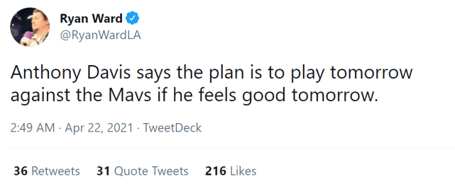 24直播网讯北京时间4月22日,湖人队安排了一次球队训练,备战明天客场对独行侠的比赛。安东尼-戴维斯在训练后的采访中表示,只要他的右腿对这次训练的感觉良好,他就会在明天对独行侠的比赛中复出!浓眉已经因伤缺席9周,累计30场比赛,在这30场比赛中,湖人14胜16负。
