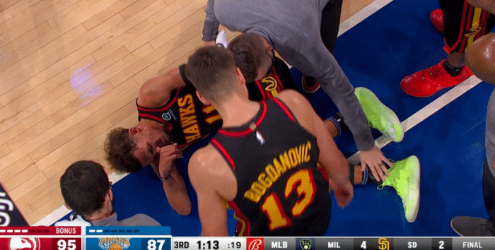 24直播网讯NBA常规赛继续进行,老鹰和尼克斯比赛中,老鹰球星特雷杨受伤离场,脚踝扭伤表情痛苦被两人搀扶离场;悲剧啊,一天已经有多名球员崴脚受伤,真是太不幸了。