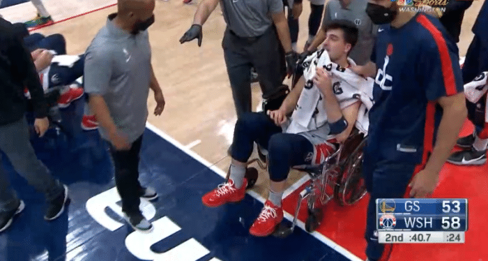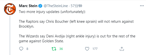 今天真是伤病不断,奇才和勇士比赛中,20岁新星阿弗迪亚扭伤脚踝,而且出现骨折的情况,已经确定赛季报销;猛龙和篮网比赛中,布歇也是不幸扭伤脚踝,被两人搀扶离场,因伤直接退出比赛。