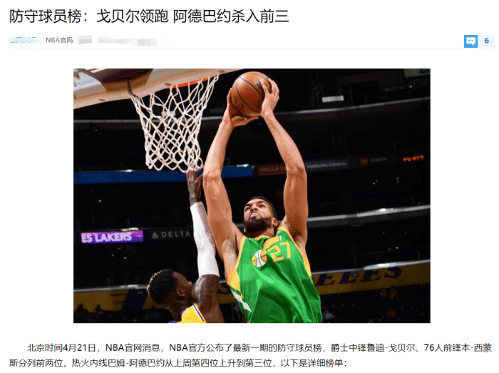 已经拿到过两次最佳防守球员的戈贝尔如今居然又一次成为了最佳防守球员名单的第一名,而他近十场的防守数据居然是2.4个盖帽和0.8次抢断,比起西蒙斯的数据还有更加恐怖。不得不说戈贝尔在防守方面真的拥有天然的优势,他的身高和臂展注定了他是一个出色的防守球员。再加上戈贝尔现在也有西部第一的战绩优势,他比西蒙斯还有更加有机会拿到最佳防守球员。