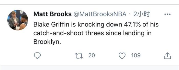 尽管格里芬在加盟篮网之后场均只有20分钟左右的出场时间,可他实际给篮网带来的效果十分巨大,这都是因为他现在惊人的三分球命中率。媒体们统计得到格里芬加盟篮网之后的11场比赛里面拥有47.5%的命中率,与此同时三分球命中率更加是达到了42.3%,而其中接球就投的三分命中率直接来到了47.2%。这对于一个大前锋来说十分难得,而这也正是格里芬的真正实力。