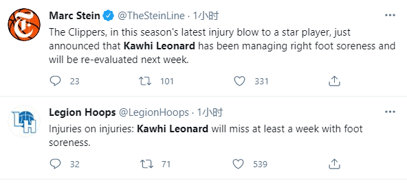 24直播网讯 NBA伤病不断,篮网官宣哈登腿筋伤势复发,无限期缺阵之后,快船当家球星小卡也伤停,快船官方宣布,小卡莱昂纳德右脚酸痛,将在一周后复查伤势;此前小卡因右脚伤势连续缺席了4场比赛;复出仅打一场,小卡又至少伤停一周。