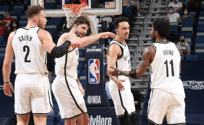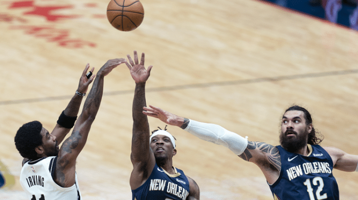 24直播网4月21日讯 今天NBA常规赛篮网以134-129险胜鹈鹕,这场比赛双方鏖战到了最后,欧文末节表现抢眼,全场轰下32分2篮板8助攻的他在最后时刻罚球和上篮都很稳定。布朗摘到关键篮板,送给鹈鹕4连败。这样篮网在只有9人出战的情况下,7人得分上双,以一场高比分的团队篮球,拿下了胜利,继续紧追东部第一,他们明天将会在背靠背中面对猛龙。