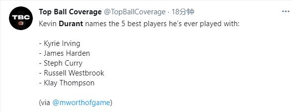 当然了,威少应该出现在杜兰特前五队友之列,至少从能力方面来说是这样的!媒体之前炒作两人之间的矛盾早已烟消云散,两人在本赛季交手后都有交流也有拥抱,至少情谊是在的。