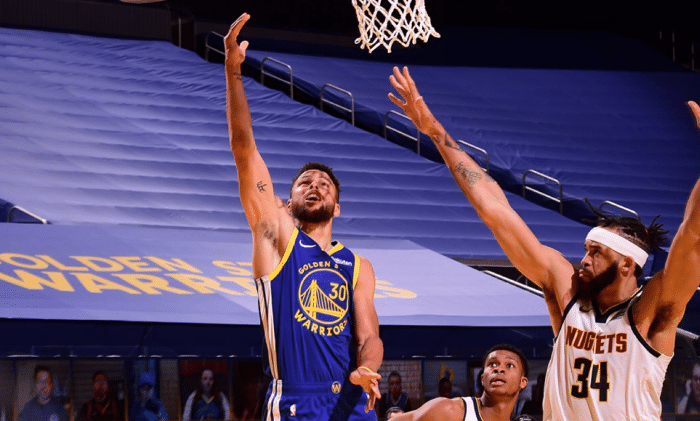 24直播网讯北京时间4月13日,勇士主场迎战掘金,虽然从两队战绩来看,勇士看上去似乎并不是掘金对手,但凭借库里个人超神表现,勇士今天击败掘金,库里一战创造3大里程碑!