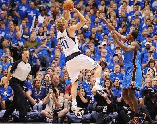 第二名诺维斯基,虽然老司机现在已经不打了,但是老球迷永远不会忘记他在2011年率领小牛队单核夺冠时的场景,面对不可一世的热火,德国战车丝毫不惧并且顶住了压力,干掉了热火。那一招金鸡独立更是成为无数防守球员的噩梦,我相信诺维斯基就凭这一招在乔丹的时代照样可以打出一片天地。