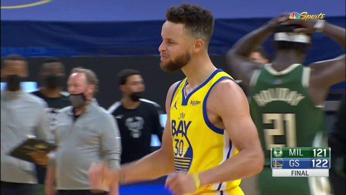 目前勇士的情况很糟糕,他们距离跌出西部前十只差一点点!上一战输球后库里放了狠话,表示非常不爽,这一战他就给出了态度,尽管遭遇雄鹿的全场包夹和霍勒迪贴防,维金斯和追梦手感都不好,他仍保持着高效21中14轰下41分6板4助带队险胜。