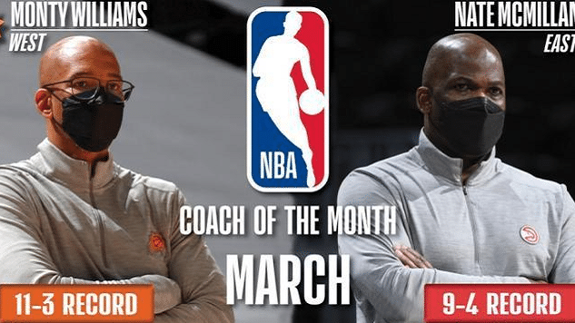 前段时间NBA官方公布东部最佳主帅,老鹰队临时主帅麦克米兰成功当选,他单月带队战绩是13战9胜4负,直接将老鹰从泥潭中拉了出来。现在又带队处于连胜中,稳居前四,同时三分球还创造了新的纪录,不得不说麦克米兰在老鹰的救火非常成功。
