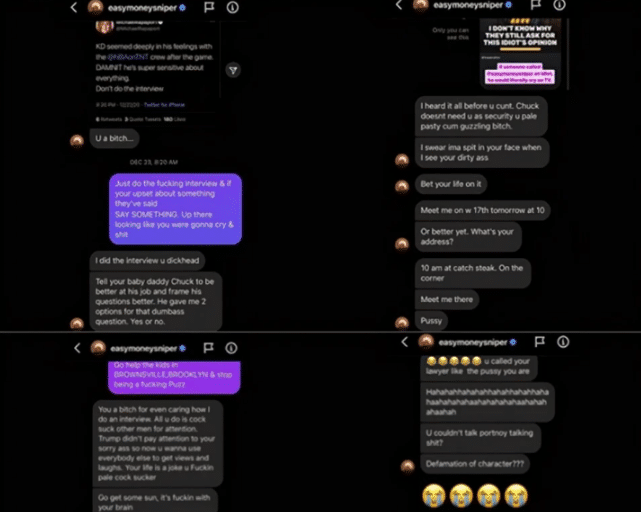 24直播网讯 前段时间杜兰特最大的新闻就是被联盟罚款5万美元,这件事情的起因是演员迈克尔-拉帕波特(Michael Rapoport)在社交媒体上公开了他和杜兰特之间的聊天记录,其中很明显杜兰特有很多不当的言论,使用侮辱性的词语,其中就包括歧视等等。虽然杜兰特很快就进行了道歉,但据悉迈克尔-拉帕波特没有接受杜兰特的歉意,而且还找到了律师,希望进行维权。后期这件事情以NBA联盟罚款杜兰特5万美元而结束,但对于迈克尔-拉帕波特来说,这件事情并没有这么简单。