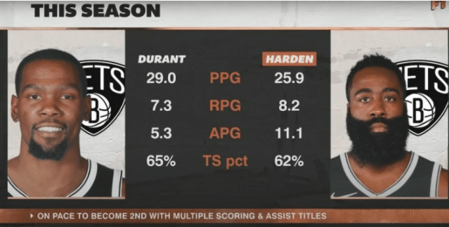“在杜兰特受伤前,我把他列为联盟的MVP最大热门。哈登是现在的MVP因为杜兰特受伤了。杜兰特之前场均29分,52%投篮命中率,43.4%的三分命中率。当我想到篮网时,杜兰特是最重要的一环。如果哈登打不了,欧文还在,和KD仍然可以夺冠。如果欧文打不了,哈登和杜兰特还在,他们还是能夺冠。如果杜兰特不在,只有哈登和欧文,他们冲不出东部。费城很强大,霍华德状态很好,赛斯-库里,这也是库里,我们看到了哈里斯这赛季的表现。恩比德也回归了,在7场制的系列赛里,我不认为篮网能战胜他们。篮网的阵容同样强大,新援阿德更是把个人特点发挥到了极致。但是如果谈到对总冠军的渴望,杜兰特是关键所在,只有哈登的话,他们是夺不了冠的,就这么简单。”