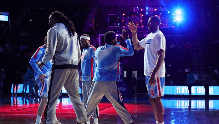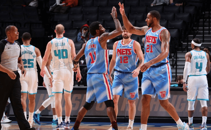 24直播网4月3日讯 最近篮网的表现吸引了很多球迷们的关注,阿德首秀表现不错,虽然没有哈登和杜兰特等巨星,但他们依旧可以保持连胜,稳居东部第一名。在和黄蜂的比赛中,有媒体称篮网的阵容太豪华了,除了上场的全明星欧文和阿尔德里奇之外,板凳席未被激活的就有一套全明星阵容:杜兰特、哈登、小乔丹、格里芬和丁威迪,这几个的实力都已经在联盟证明过,而他们休战,篮网依旧有超级巨星,而且可以带队拿下胜利。