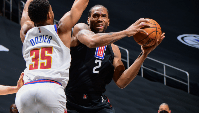 虽然约基奇上半场在进攻端没什么表现,但戈登、迈克尔波特、穆雷、巴顿4人得分上双!阿隆戈登的体型完全可以对得上伦纳德,小卡半场仅得到9分,比戈登还少1分!不得不说,50分先生确实很适合丹佛。上半场结束,掘金领先到13分!