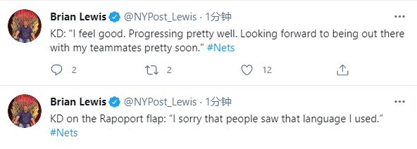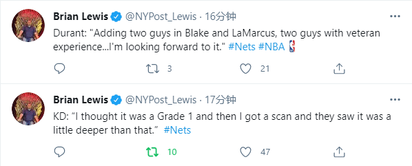对于格里芬和阿尔德里奇两大全明星的加盟,杜兰特表示十分期待,球队增加了两名有经验的球员;据此前报道,杜兰特养伤期间也没闲着,他是招募格里芬和阿德的最大功臣,最终篮网成功在买断市场新援两大全明星,提升了阵容的深度。