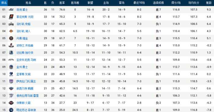 现在的湖人战绩是30胜18负,位居西部第四,不过他们领先身后球队的优势已经很小了,掘金开拓者距离湖人之间只有0.5个胜差,第七名的独行侠距离湖人4个胜差,第八的马刺距离湖人之间有4.5个胜差。