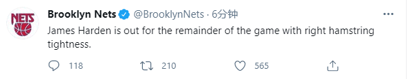 篮网官宣!哈登伤退,仅打27分钟便因伤退赛,伤后坐场边表情忧伤