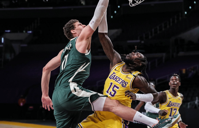 24直播网4月1日讯 今天雄鹿湖人的强强对话结束了争夺,最终雄鹿在客场112-97逆转击败湖人,完成复仇。这场比赛雄鹿在首节一度落后对手两位数,好在霍乐迪、米德尔顿和字母哥爆发,完成翻盘好戏。比赛中德拉蒙德首发迎来了湖人生涯首秀,但比赛中他右脚趾挫伤,因伤离场,这样庄神在自己湖人首秀中出场14分19秒6投2中,罚球2中0,得到4分1篮板2助攻1盖帽的数据。