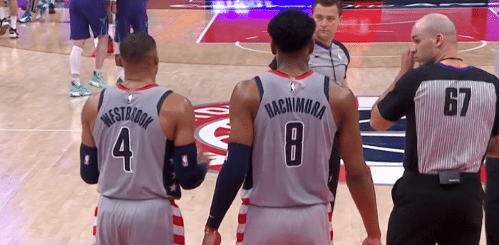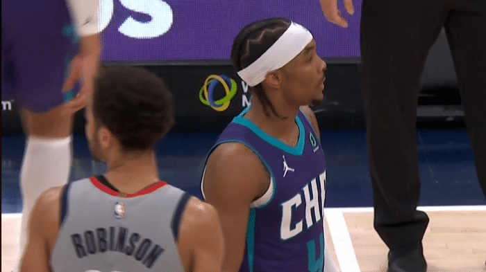 比赛开场后两队就互飙三分,海沃德3中3,格拉汉姆、罗齐尔等人也相继命中,奇才这边不甘示弱,威少和杰罗姆罗宾逊也都3中2,八村塁中投+篮下打进,黄蜂队在首节篮板球占据优势以32:29稍稍领先,海沃德单节15分3板,而威少则是8分3板3助!