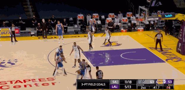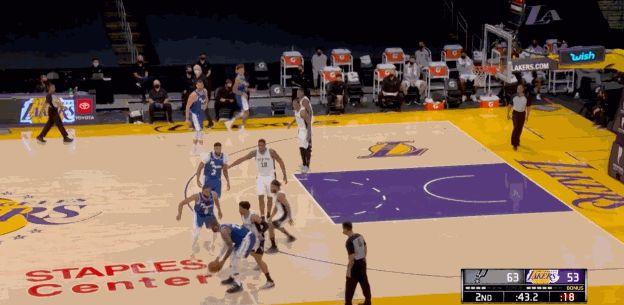 可是接下来的塔克却被詹姆斯上课了。原来,湖人的这波攻势已经被马刺看透,马刺的两名球员随时准备着挡拆完包夹詹姆斯,看穿这一切的詹姆斯自然不会落入马刺的陷阱。