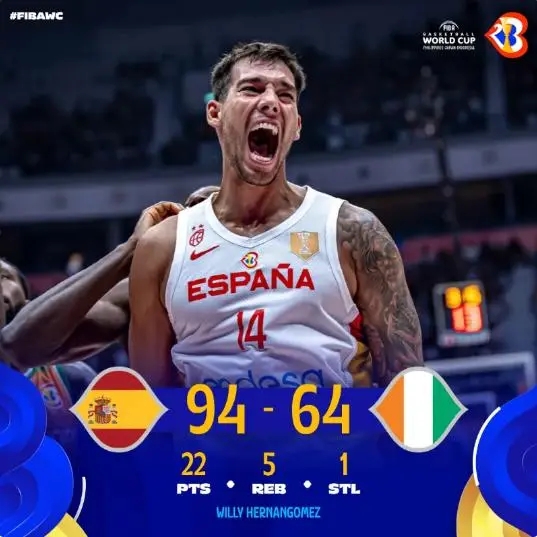 24直播网讯 北京时间8月26日讯 男篮世界杯小组赛,西班牙今日对阵科特迪瓦,前者拥有埃尔南戈麦斯、加鲁巴、阿尔达马、阿布里内斯、克拉韦尔和老将费尔南德斯等多名NBA经验的球员。比赛上来,西班牙就率先进入状态打出9-0的完美开局,分差也是逐渐拉开到了两位数,好在是科特迪瓦在首节后半段找回感觉迫近比分,次节科特迪瓦的势头还在延续,分差最小时仅剩4分,但此后西班牙开始发力没有再给对手机会,半场结束时分差已经达到19分;下半场回来科特迪瓦完全没有了招架之力,第三节单节只拿到13分,分差在末节也是逼近三十分,比赛彻底失去悬念,最终西班牙大胜科特迪瓦迎来开门红。