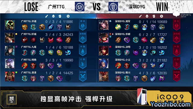 深圳DYG禁用:大乔,铠,周瑜,不知火舞