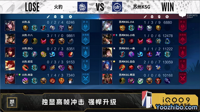 开局苏州KSG中路、发育路换线。1分10秒中路上河道团火豹打出1换2。3分钟野区团苏州KSG打出1换2。4分36秒苏州KSG摧毁敌方发育路外塔。5分48秒苏州KSG拿下先知主宰。6分15秒苏州KSG先后摧毁敌方中路、对抗路外塔。7分21秒苏州KSG摧毁敌方对抗路二塔。8分02秒苏州KSG拿下暴君。8分43秒苏州KSG摧毁敌方发育路二塔。10分20秒苏州KSG拿下暗影主宰。11分40秒高地团火豹打出0换2。11分32秒苏州KSG摧毁敌方发育路、中路高地塔。12分26秒火豹拿下暗影暴君。13分钟野区团,苏州KSG打出0换2。13分30秒高地团火豹打出1换2。15分23秒苏州KSG拿下1暗影主宰。16分28秒苏州KSG摧毁敌方对抗路高地塔。16分57秒苏州KSG拿下暗影暴君。18分钟高地团苏州KSG打出0换1,随后摧毁水晶拿下比赛。