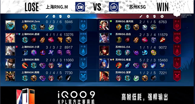 1分01秒,上海RNG.M中路击杀鬼谷子拿下一血。1分45秒,苏州KSG上路击杀廉颇。2分12秒,苏州KSG控下先知主宰。3分42秒,苏州KSG中路击杀凯,随后拿下暴君。4分37秒,上海RNG.M破掉苏州KSG下一塔,随后苏州KSG镜像破掉上海RNG.M上一塔。5分30秒,中路团,苏州KSG打出0换2,镜拿下二连击破。6分13秒,上海RNG.M上路击杀蒙恬。6分42秒,中路团,苏州KSG打出0换3,随后破掉上海RNG.M中一塔。8分17秒,苏州KSG控下暴君。9分28秒,苏州KSG上路击杀狄仁杰。10分15秒,苏州KSG控下暗影主宰。11分25秒,苏州KSG破掉上海RNG.M中二塔。12分12秒,苏州KSG控下暗影暴君。12分39秒,野区团,苏州KSG打出1换2,随后破掉上海RNG.M中路高地。13分59秒,苏州KSG拿下暗影主宰。14分35秒,苏州KSG高地击杀狄仁杰随后破掉上海RNG.M下路高地。15分10秒,苏州KSG高地团打出0换2,随后强点水晶连下两局。