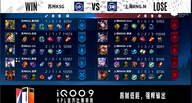 2分12秒,苏州KSG控下暴君。3分33秒,野区团,双方打出1换1,苏州KSG张飞拿下一血。4分32秒,苏州KSG控下先知主宰。4分45秒,野区团,苏州KSG击杀关羽。5分12秒,苏州KSG破掉上海RNG.M下一塔。5分35秒,上海RNG.M下路击杀橘右京,随后破掉苏州KSG下一塔。6分11秒,苏州KSG破掉上海RNG.M中一塔。7分54秒,上海RNG.M破掉苏州KSG上一塔。8分03秒,中路团,苏州KSG击杀关羽。9分21秒,苏州KSG破掉上海RNG.M上二塔。10分09秒,苏州KSG破掉上海RNG.M下二塔,随后团战打出1换2。11分10秒,苏州KSG拿下暗影主宰。11分35秒,上海RNG.M上路击杀狄仁杰。11分50秒,上路团,上海RNG.M打出1换4,随后苏州KSG橘右京拿下双杀。14分56秒,苏州KSG拿下暗影主宰。15分26秒,上海RNG.M控下暗影暴君。15分30秒,中路团,苏州KSG打出2换3,随后破掉高地塔点掉水晶连下三城终结比赛。