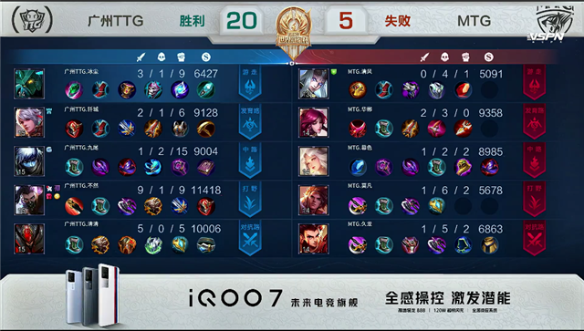 双方和平开局。2分10秒下路交火,兰陵王拿到一血,团战广州TTG打出1换2。3分钟上路团战,双方1换1。3分30秒兰陵王拿下主宰。4分13秒虞姬推掉下路一塔。5分30秒兰陵王拿下暴君,团战中马超被击杀。6分10秒虞姬被击杀。8分50秒嬴政推掉中路一塔。9分18秒阿古朵拿下主宰。9分32秒野区团战,MTG打出1换2。10分钟马超被击杀。10分10秒兰陵王拿下暴君。11分47秒双方1换1。12分钟马超推掉下路一塔。13分钟兰陵王拿下主宰。14分25秒野区团战,双方3换3。16分07秒阿古朵拿下暴君,团战广州TTG打出1换4。16分50秒广州TTG推掉下路高地塔,马超被击杀。17分49秒MTG推掉中路高地塔。18分32秒关羽抢下主宰。20分47秒中路团战,双方1换1。21分42秒MTG推掉水晶率先拿到赛点。
