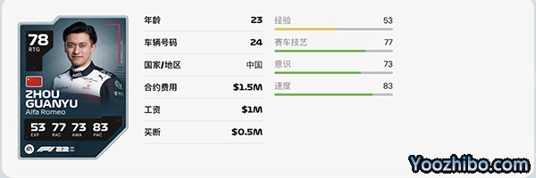 周冠宇总的能力值和之前持平,为78