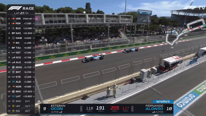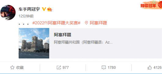 F1来到阿塞拜疆,周冠宇第一次出发位次比队友博塔斯靠前,赛前他也信心百信,希望可以实现自己的目标,第二次斩获积分。比赛中周冠宇换上白胎之后超越了斯特罗尔,随后超越队友博塔斯,升至第13名。阿隆索进站,周冠宇上升到第12名。法拉利双车退赛,周冠宇来到前10名的积分区。