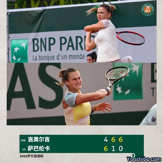 萨巴伦卡的对手是吉奥尔吉,第一盘萨巴伦卡6-4拿下之后,第二盘和第三盘显得很是乏力,连续1-6和0-6惨败,大比分1-2惨遭逆转。成为首周第6个出局的前八种子,第8个出局的前十种子。萨巴伦卡连续三年止步法网32强,法网是她唯一一个没进过第二周的大满贯;而吉奥尔吉生涯首进法网16强,将战卡萨金娜,这是她第二次在大满贯击败TOP10。