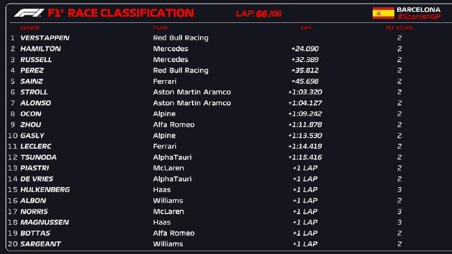 24直播网讯 2023年F1西班牙大奖赛正式比赛在巴塞罗那赛道结束。杆位起步的红牛车手维斯塔潘一路领跑轻松夺冠,收获赛季第五冠,生涯分站冠军数来到40;梅赛德斯车队汉密尔顿收获亚军,拉塞尔从第12位发车斩获季军,梅赛德斯双领奖台,升级初见成效!